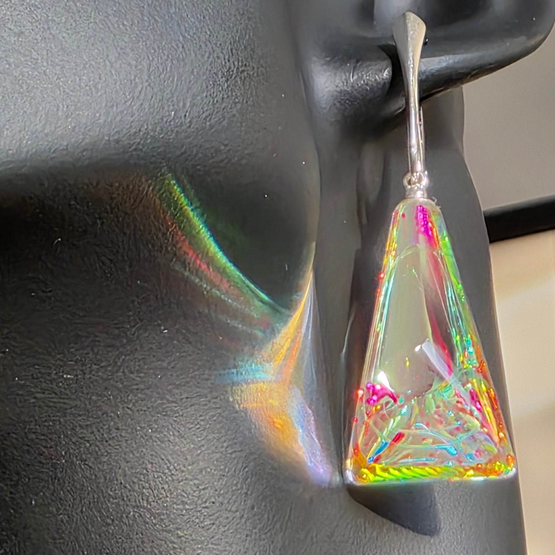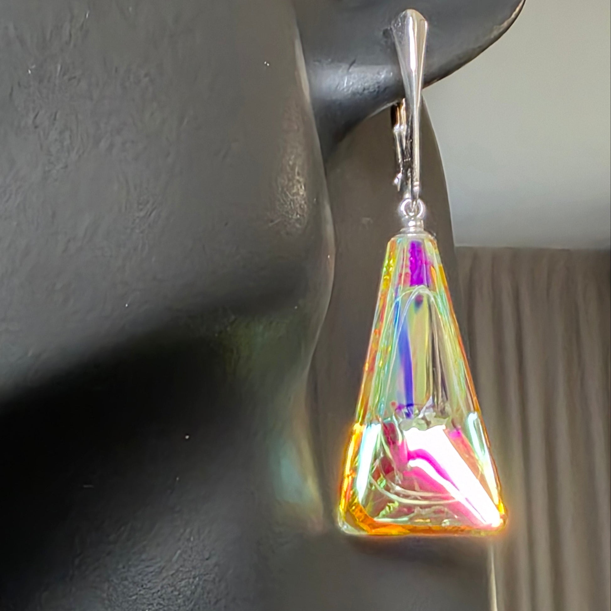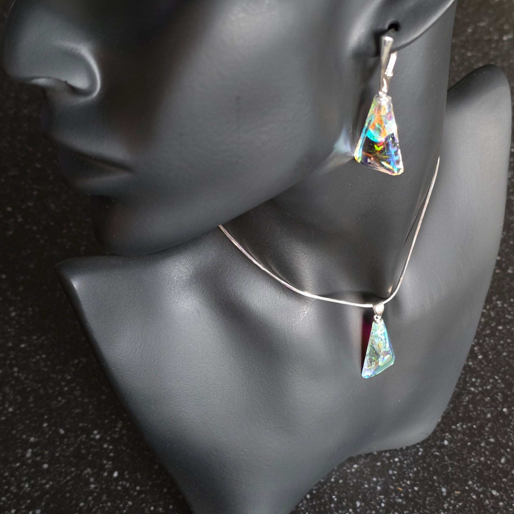 The earrings and pendant share the same refined geometry, creating a harmonious, modern silhouette. Their prismatic surfaces scatter luminous reflections, making Tair a vibrant yet delicate statement—perfect worn as a set or individually.