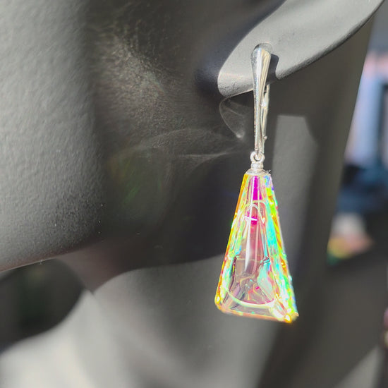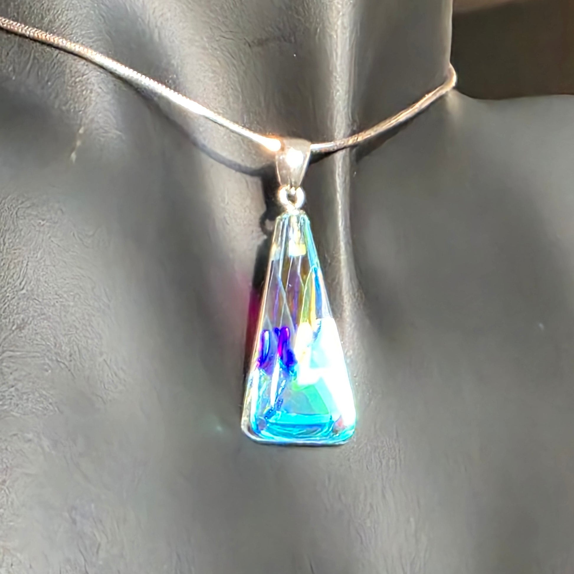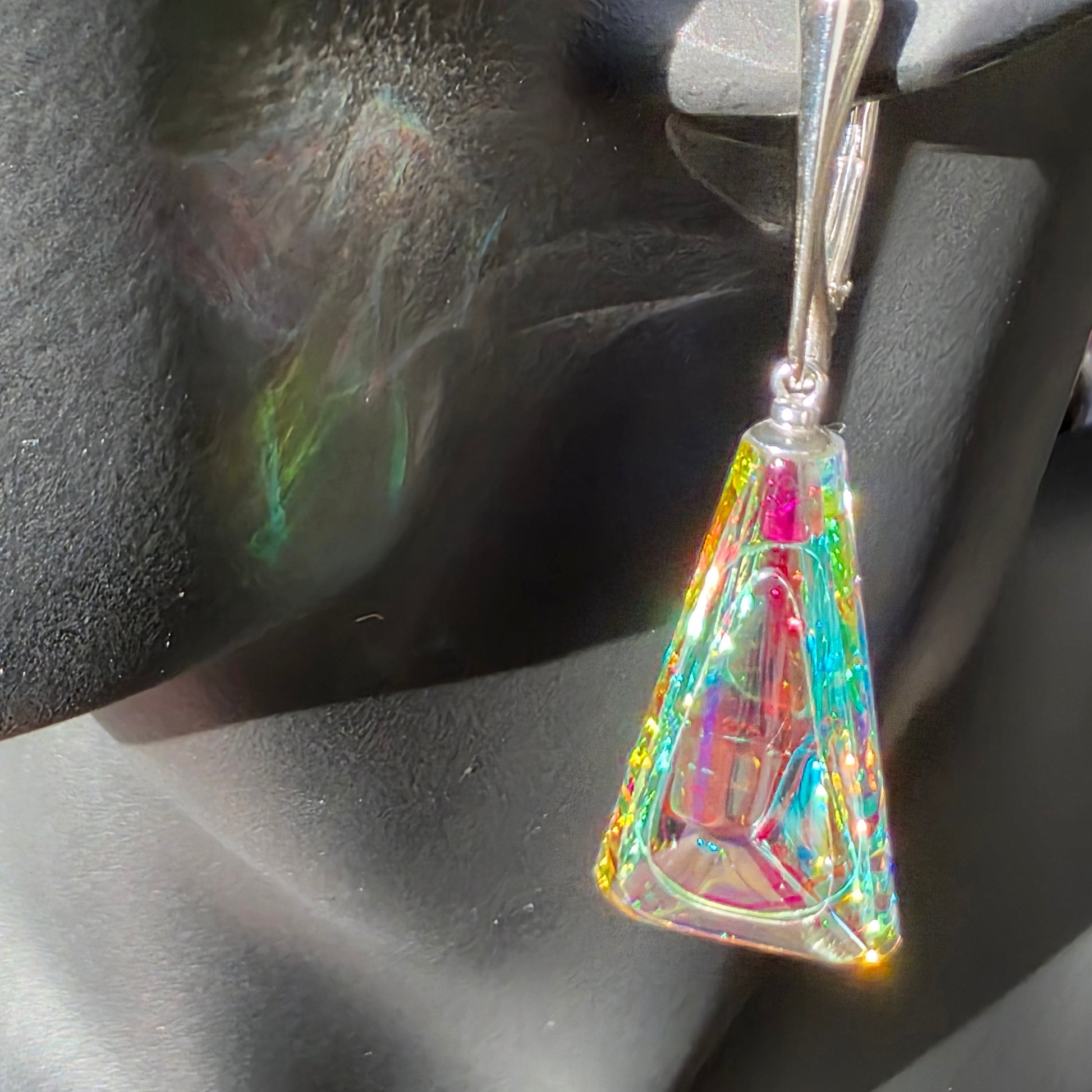 The earrings and pendant share the same refined geometry, creating a harmonious, modern silhouette. Their prismatic surfaces scatter luminous reflections, making Tair a vibrant yet delicate statement—perfect worn as a set or individually.